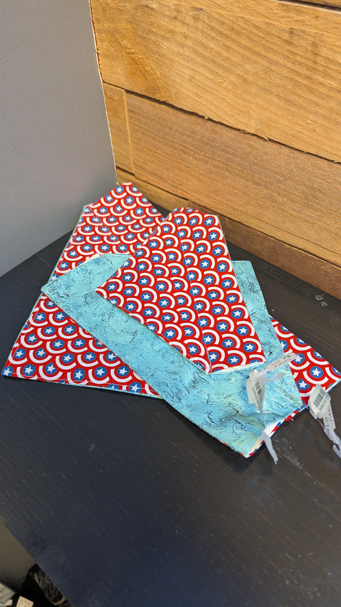 Patriotic/super hero on one side and  blue marble on the other